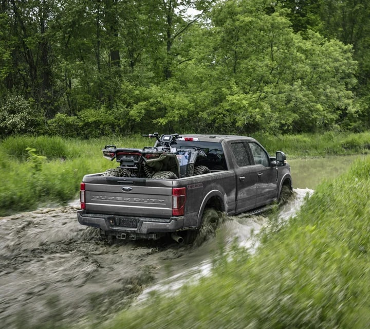 The 2022 Ford Super Duty® available Tremor Off-Road Package features Best-in-Class* Water Fording up to depths of 33 inches. ** Extended vent axle tubes help you go deeper and the Tremor's limited-slip front differential and Rock Crawl™ mode can help push you even further.