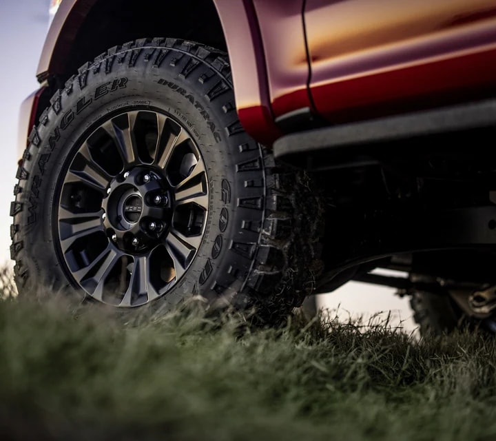 The Ford Super Duty available Tremor Off-Road Package features 35-inch maximum traction tires, the largest tires ever fitted to a heavy-duty pickup. With a 2-inch front lift and a best-in-class* approach angle of 31.7 degrees, the Super Duty with Tremor Off-Road Package provides you with grip in virtually all off-road situations.