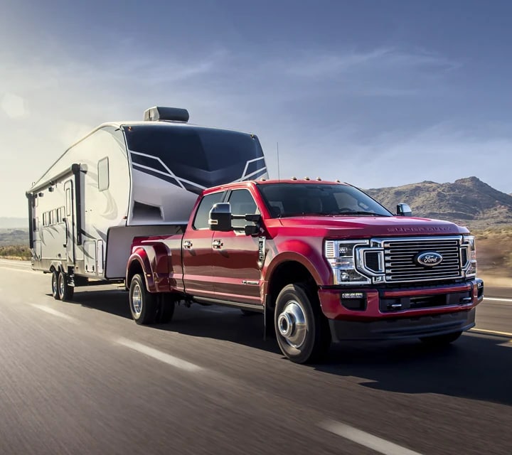 Super Duty® never stops moving forward. That's why Ford Super Duty features the available 7.3L OHV gas V8 and the available Power Stroke® V8 Turbo Diesel, and offers the latest technology with an available new 12-inch screen featuring the all-new SYNC® 4. Impressive Super Duty gas and diesel power ratings combine with rugged frame and chassis engineering to achieve strong numbers in every category of hauling and towing, including best-in-class horsepower, best-in-class GCWR, best-in-class payload and the best 5th-wheel and conventional towing in its class. *