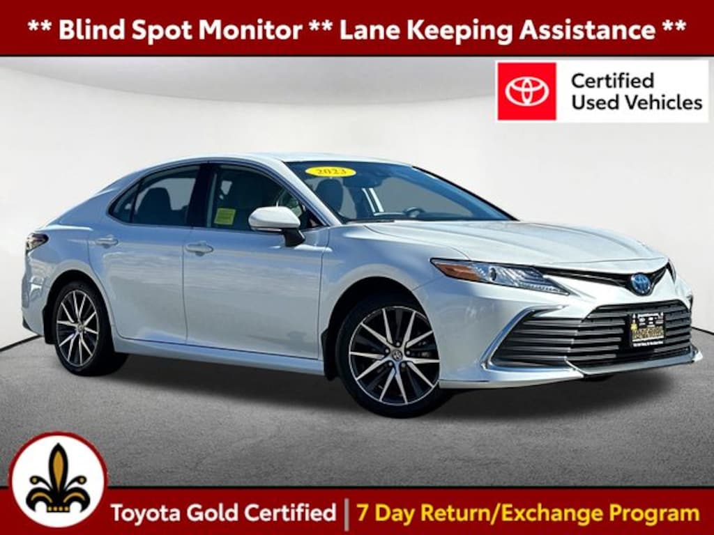 Blind Spot Monitor, Lane Keeping Assistance, Apple CarPlay / Android Auto, Collision Avoidance Assistance, Power Leather Seats, Heated Seats, Backup Camera, Bluetooth, ** Toyota CPO Certified **, Cruise Control, Power Windows, Power Locks, Steering Wheel Radio Controls, Aluminum Wheels, 2.5L I4 DOHC 16V. Certified. Pearl 2023 Toyota Camry Hybrid XLE XLE 4D Sedan 2.5L I4 DOHC 16V FWD eCVT