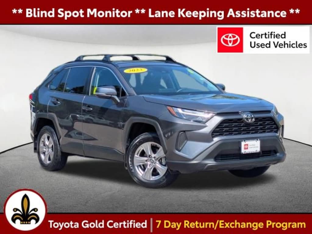 Blind Spot Monitor, Lane Keeping Assistance, Apple CarPlay / Android Auto, Adaptive Cruise Control, Cross Traffic Alert, Power Seats, Backup Camera, Bluetooth, ** Toyota CPO Certified **, Cruise Control, Power Windows, Power Locks, Steering Wheel Radio Controls, Aluminum Wheels, Luggage Rack, AWD, Black Cloth. Certified. Magnetic Gray Metallic 2023 Toyota RAV4 XLE XLE 4D Sport Utility 2.5L 4-Cylinder DOHC Dual VVT-i AWD 8-Speed Automatic