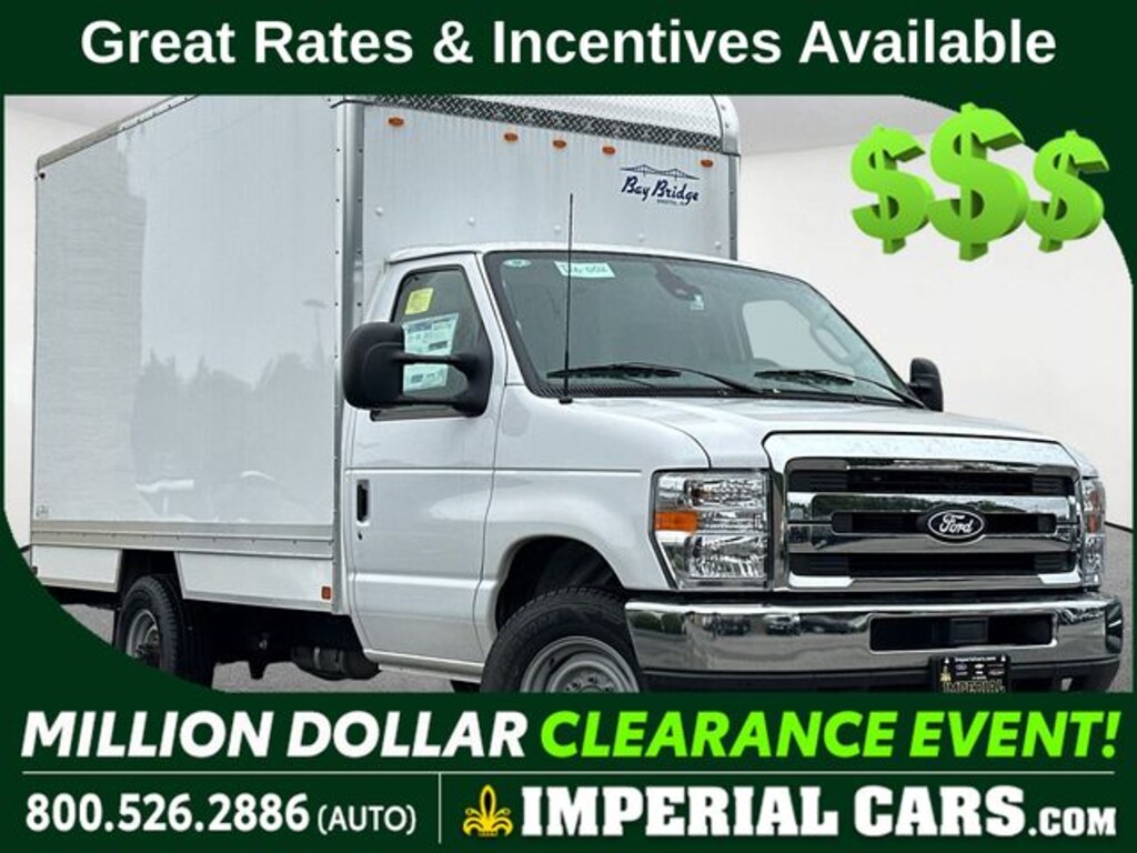 E-Series Cutaway trim with BayBridge 12 Box (12Lx66Hx79W) Upfit with 24x43 Sliding Bulkhead Door, 12 Ceiling Liner, Flush Rear Sill, 12 Step Bumper, LED Rear Brake Turn Signal and Backup Lights, E-Track 12 One Row Each Side-Ctr, Safety Backup Alarm, Radius Front with Cast Corners, 18 Hi-Output LED Cargo Light, Composite Roll-Up Rear Door, Grab Handles, 30x10 Roll A Ramp, Back Up Camera. POWER EQUIPMENT GROUP: 1-touch down power driver window, 110V Power Inverter, Remote Keyless Entry, SecuriLock Passive Anti-Theft System (ePATS), 4.10 AXLE RATIO W/LIMITED-SLIP, CRUISE CONTROL, MANUAL TELESCOPING TRAILER TOW MIRRORS (54E): power-adjust flat lens, ORDER CODE 780A, ENGINE: 7.3L V8 PORT FUEL INJECTED GASOLINE: (STD).