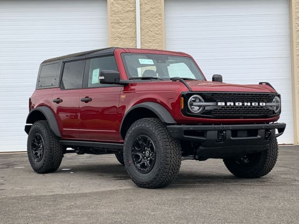 EQUIPMENT GROUP 334A LUX PACKAGE Rear Parking Sensors, Power Outlet - Back Side of Center Floor Console, Dr & Pass Illuminated Sliding Visor Vanity Mirrors, Evasive Steering Assist, Information on Demand Panel, Dual-Zone Electronic Automatic Temperature Control, air conditioning, Ford Co-Pilot360, Enables compatibility w/FordPass performance app w/off-road navigation, Auto High-Beam Headlamps, Pre-Collision Assist w/Automatic Emergency Braking, pedestrian detection, forward collision warning and dynamic brake support, Blind Spot Information System (BLIS), Cross-Traffic Alert, Rear View Camera, backup assist grid lines, Lane-Keeping System, Lane-Keeping Alert, Lane-Keeping Aid and Driver Alert, Ambient Footwell Lighting, 2-Door Intelligent Access w/Lock/Unlock, Intelligent Access will also, SASQUATCH PACKAGE Wheels: 17 Carbonized Gray Painted Aluminum, High Clearance Fender Flares, High Clearance Suspension, 4.7 Final Drive Ratio, electronic-locking front and rear axle, Tires: LT315/70R17 Rugged-Terrain, Position-Sensitive Bilstein Shock Absorbers, SHADOW BLACK PAINTED HARD TOP Hard Top Sound Deadening Headliner, Rear-Window Defroster & Washer, ENGINE: 2.7L ECOBOOST V6 GVWR: 6,180 lbs, TRANSMISSION: 10-SPEED AUTOMATIC remote start system, trail control, trail turn assist and trail one-pedal driving, 4.46 Axle Ratio, FRONT & REAR FLOOR LINERS W/O CARPET FLOOR MATS Custom accessory, pre-installed, Deletes carpet front and rear floor mats. Ford Badlands with Ruby Red Metallic Tinted Clearcoat exterior and Black Onyx interior features a V6 Cylinder Engine with 315 HP at 5500 RPM*.