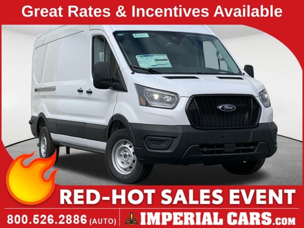 RADIO: AM/FM STEREO W/SYNC 4 12 multi-function display, Bluetooth®, dual USB ports, embedded voice recognition, connected navigation and 4 speakers (front), Electronic Air Temperature Control, PRIVACY GLASS Provides protection of vehicle occupant(s) and occupant personal belongings, The glass also provides occupant comfort by helping to reduce vehicle cool-down time, Rear-Window Defroster, BLACK HIGH-INTENSITY DISCHARGE (HID) HEADLAMPS LED signature surround, HID headlamps emit a brighter, more natural light than halogen headlamps, which can help improve visibility, 3.73 LIMITED-SLIP AXLE RATIO, REVERSE SENSING SYSTEM, TRANSMISSION: 10-SPD AUTOMATIC W/OD & SELECTSHIFT auxiliary transmission oil cooler (STD), HIGH RESOLUTION DIGITAL CAMERA. Ford Transit Cargo Van with Oxford White exterior and Dark Palazzo Gray interior features a V6 Cylinder Engine with 275 HP at 6250 RPM*.