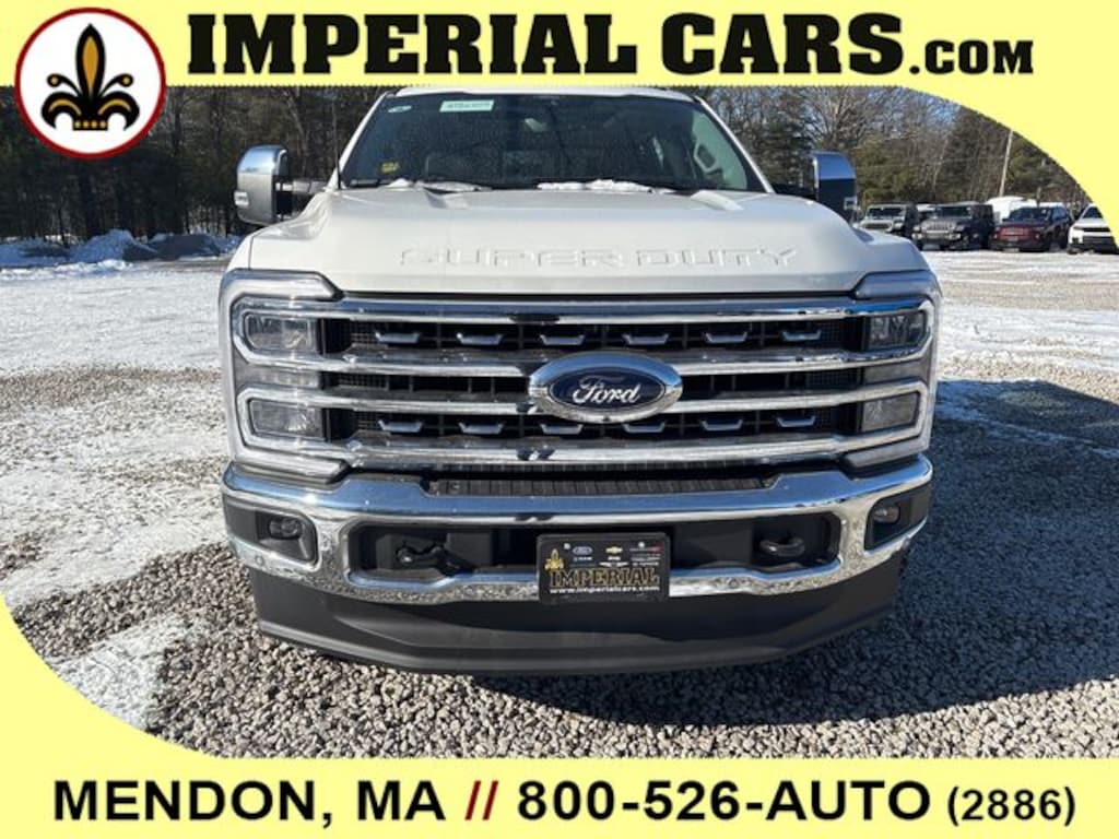 ENGINE: 6.7L HIGH OUTPUT POWER STROKE V8 DIESEL Turbo diesel B20, manual push-button engine-exhaust braking and Operator Commanded Regeneration (OCR), 250 Amp Alternator, 34 Gallon Fuel Tank, 3.31 Axle Ratio, High Capacity 11.6 Axle Upgrade Package, increased GCW and upgraded 11.6 axle, Note: Salespersons portfolio or trailer towing guide should be consulted for specific trailer towing or camper limits and corresponding required equipment, axle ratios and model availability, See supplemental reference for vehicle height consideration, Dual AGM 68 AH Battery, LARIAT ULTIMATE PACKAGE Tailgate Step & Handle, Head-Up Display, 4-Way Adjustable Headrests, Power-Deployable Running Boards, Radio: B&O Unleashed Sound System by Bang & Olufsen, HD Radio w/14 speakers including subwoofer, LARIAT PREMIUM PACKAGE lane departure warning, Pro Trailer Hitch Assist, Ford Co-Pilot 360 Assist 2.0, rear view camera and reverse brake assist, Pre-Collision Assist, Automatic Emergency Braking (AEB), pedestrian detection, forward collision warning, dynamic brake support and intersection assist, Post-Collision Braking, Lane-Keeping System, lane-keeping alert, lane-keeping aid and driver alert, Front & Rear Parking Sensors, Automatic High Beam, Adaptive Cruise Control w/Stop-and-Go, lane centering and predictive speed assist, Power-Sliding Rear-Window w/Defrost, Pro Trailer Backup Assist, trailer reverse guidance, TWIN PANEL POWER MOONROOF map lights and moonroof switches, CHROME PACKAGE Unique Chrome Mirror Caps, Tires: LT275/65Rx20E BSW Automatic Transmission, Spare may not be the same as road tire