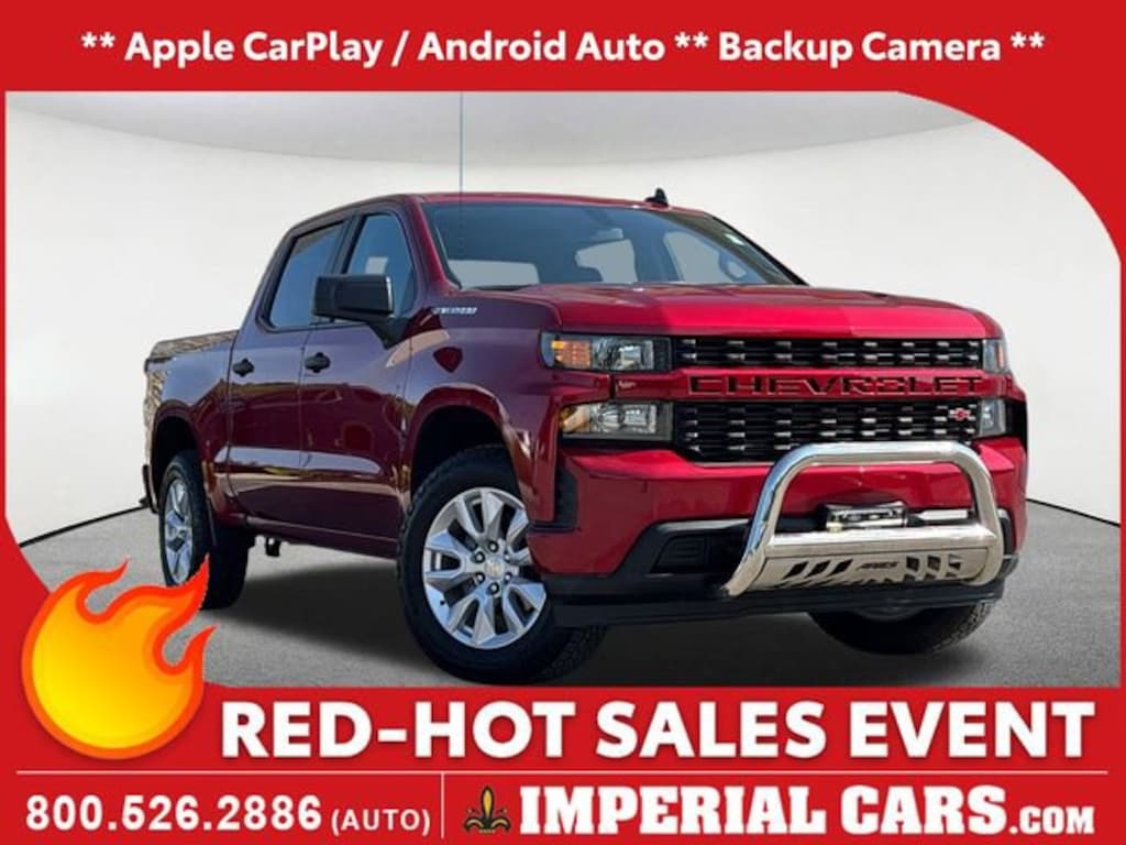 Apple CarPlay / Android Auto, Backup Camera, Bluetooth, Cruise Control, Power Windows, Power Locks, Steering Wheels Radio Controls, Aluminum Wheels, Towing Package, 8-Speed Automatic, 4WD, Black Cloth, 170 Amp Alternator, 3.5 Diagonal Monochromatic Display, 4G LTE Wi-Fi Hot Spot Capable, Bluetooth® For Phone, Body Color Grille, Chevrolet Connected Access Capable, Color-Keyed Carpeting Floor Covering, Compass, Custom Convenience Package, Custom Value Package, Deep-Tinted Glass, Electric Rear-Window Defogger, Electronic Cruise Control, EZ Lift Power Lock & Release Tailgate, Front Frame-Mounted Black Recovery Hooks, Front Rubberized Vinyl Floor Mats, Hitch Guidance, Infotainment Package, LED Cargo Area Lighting, Manual Tilt Wheel Steering Column, OnStar & Chevrolet Connected Services Capable, Power Door Locks, Power Front Windows w/Driver Express Up/Down, Power Front Windows w/Passenger Express Down, Power Rear Windows w/Express Down, Preferred Equipment Group 1CX, Rear 60/40 Folding Bench Seat (Folds Up), Rear Rubberized-Vinyl Floor Mats, Remote Keyless Entry, Remote Vehicle Starter System, SiriusXM Radio, Standard Tailgate, Theft Deterrent System (Unauthorized Entry), Trailering Package. Cherry Red Tintcoat 2021 Chevrolet Silverado 1500 Custom 4D Crew Cab Custom 4WD 8-Speed Automatic