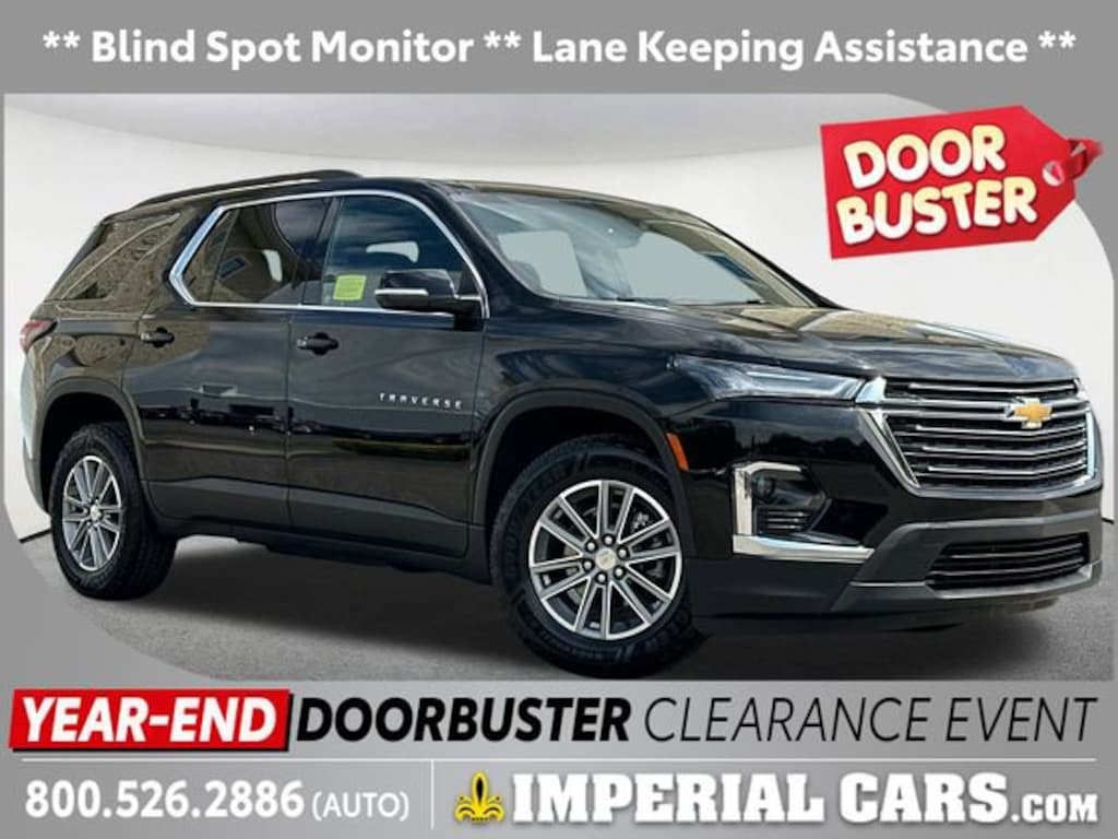 Blind Spot Monitor, Lane Keeping Assistance, Cross Traffic Alert, Apple CarPlay / Android Auto, Power Seats, Heated Seats, Backup Camera, Bluetooth, Cruise Control, Power Windows, Power Locks, Steering Wheels Radio Controls, Aluminum Wheels, Luggage Rack, Third Row Seats, AWD, Cargo Package (LPO), Front License Plate Bracket Mounting Package, Heated Driver & Front Passenger Seats, Preferred Equipment Group 1LT, Rear Park Assist w/Audible Warning, Retractable Cargo Shade, Vertical Cargo Net (LPO). Mosaic Black Metallic 2022 Chevrolet Traverse LT 1LT 4D Sport Utility LT 1LT AWD 9-Speed Automatic