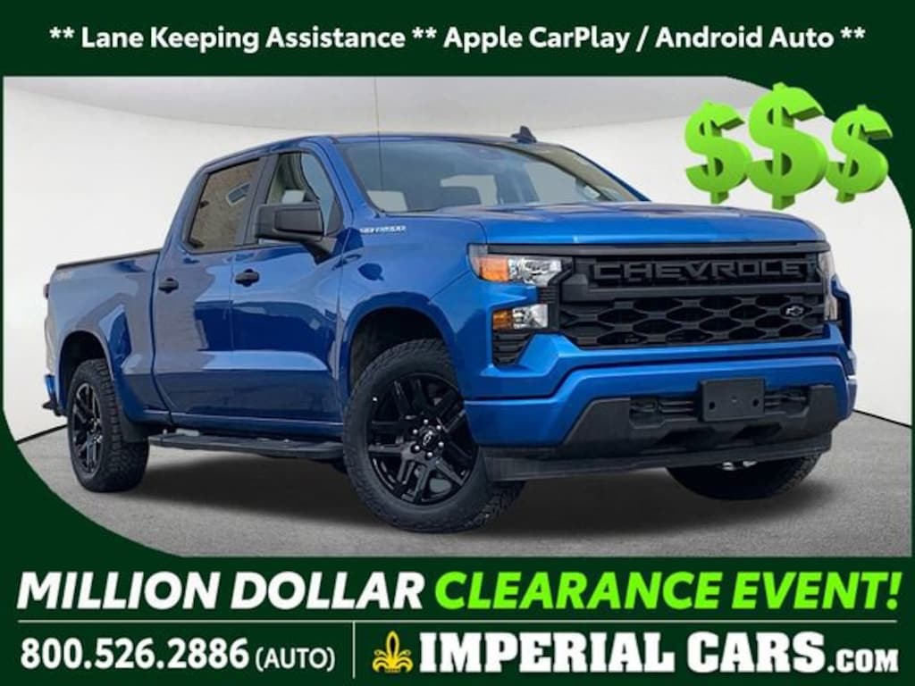 Discover the perfect blend of capability, style, and technology in the 2023 Chevrolet Silverado 1500 Custom. This rugged and versatile pickup is ready to take on any challenge, whether you're tackling tough job sites, exploring the great outdoors, or simply navigating your daily commute.Packed with an impressive array of features, this Silverado 1500 Custom stands out from the crowd. Key highlights include: Lane Keeping Assistance Apple CarPlay / Android Auto Power Seats Backup Camera Bluetooth Cruise Control Power Windows and Locks Steering Wheel Radio Controls Aluminum Wheels Running Boards / Side Steps Black Tubular Assist Steps Chevytec Spray-On Black Bedliner Glacier Blue Metallic Exterior Auto-Locking Rear Differential Integrated Trailer Brake Controller All-Terrain TiresThe Custom Convenience Package, Custom Value Package, High Capacity Suspension Package, and Trailering Package further enhance the Silverado's capabilities, ensuring you have the tools to tackle any task with confidence.Beneath the hood, you'll find a powerful 2.7L Turbo engine mated to an 8-speed automatic transmission, delivering an impressive blend of power and efficiency. With 4-wheel drive and 18 city / 21 highway MPG, this Silverado 1500 Custom is ready to take you wherever you need to go, whether that's a job site, the great outdoors, or simply running errands around town.The interior of this Silverado 1500 Custom is equally impressive, with a host of advanced technology features that keep you connected and entertained on the go. Enjoy the convenience of wireless phone projection, dual rear USB ports, a 120-volt bed-mounted power outlet, and a 120-volt instrument panel power outlet. The 3.5-inch monochromatic driver information center and Chevrolet Infotainment 3 system provide easy access to all the information and entertainment you need.Safety is also a top priority, with features like Automatic Emergency Braking, Forward Collision Alert, Lane Keep Assist with Lane Departure Warning, and the HD Rear Vision Camera ensuring you can navigate with confidence.Whether you're looking for a capable work truck, a versatile family hauler, or a stylish and well-equipped daily driver, the 2023 Chevrolet Silverado 1500 Custom is the perfect choice. Experience the uncompromising performance, advanced technology, and exceptional value that this impressive pickup has to offer. Visit our showroom today and let us demonstrate why the Silverado 1500 Custom is the perfect fit for your needs.
