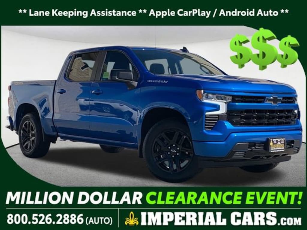 Lane Keeping Assistance, Apple CarPlay / Android Auto, Power Seats, Heated Seats, Backup Camera, Bluetooth, Cruise Control, Power Windows, Power Locks, Steering Wheels Radio Controls, Aluminum Wheels, 8-Speed Automatic, 4WD, Black Cloth, 10-Way Power Driver Seat w/Lumbar, 12.3 Multicolor Reconfigurable Digital Display, 120-Volt Bed Mounted Power Outlet, 120-Volt Instrument Panel Power Outlet, 6-Speaker Audio System, All-Star Edition, Auto-Locking Rear Differential, Bluetooth® For Phone, Chevrolet Connected Access Capable, Color-Keyed Carpeting Floor Covering, Compass, Convenience Package, Deep-Tinted Glass, Dual Rear USB Ports (Charge Only), Dual-Zone Automatic Climate Control, Electric Rear-Window Defogger, Electrical Steering Column Lock, Electronic Cruise Control, EZ Lift Power Lock & Release Tailgate, Front Frame-Mounted Black Recovery Hooks, Front LED Fog Lamps, Front Rubberized Vinyl Floor Mats, HD Rear Vision Camera, Heated Driver & Front Outboard Passenger Seats, Heated Power-Adjustable Outside Mirrors, Heated Steering Wheel, High Capacity Suspension Package, High Gloss Black Mirror Caps, Hitch Guidance, Inside Rear-View Mirror w/Tilt, Keyless Open & Start, LED Cargo Area Lighting, OnStar & Chevrolet Connected Services Capable, Power Front Windows w/Driver Express Up/Down, Power Front Windows w/Passenger Express Down, Power Rear Windows w/Express Down, Preferred Equipment Group 1SP, Rear 60/40 Folding Bench Seat (Folds Up), Rear Rubberized-Vinyl Floor Mats, Remote Vehicle Starter System, SiriusXM w/360L, Standard Suspension Package, Standard Tailgate, Steering Wheel Audio Controls, Theft Deterrent System (Unauthorized Entry), Trailering Package, Wi-Fi Hot Spot Capable, Wireless Phone Projection, Wrapped Steering Wheel. Glacier Blue Metallic 2023 Chevrolet Silverado 1500 RST 4D Crew Cab RST 4WD 8-Speed Automatic