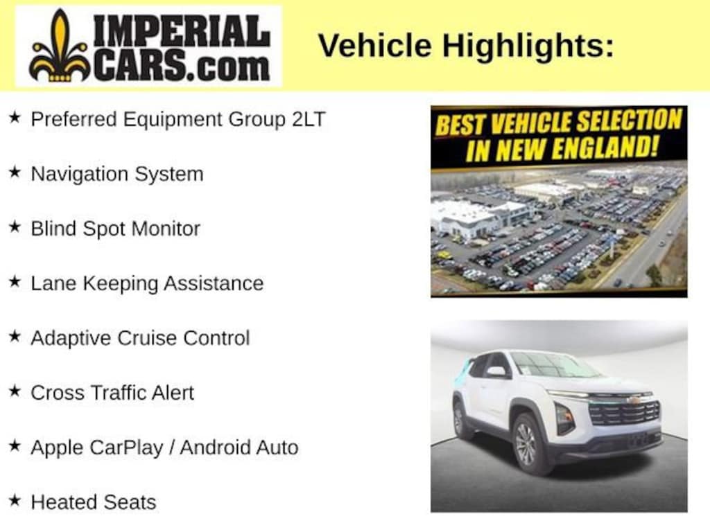 The Preferred Equipment Group 2LT further elevates the Equinox's capabilities, providing additional premium amenities to elevate your driving experience.