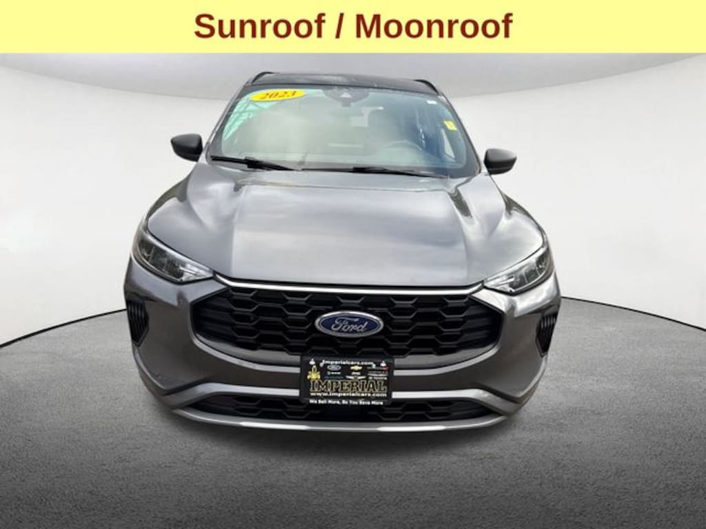 Sunroof / Moonroof, Blind Spot Monitor, Lane Keeping Assistance, Apple CarPlay / Android Auto, Cross Traffic Alert, Power Seats, Heated Seats, Backup Camera, Bluetooth, Remote Engine Starter, Cruise Control, Power Windows, Power Locks, Steering Wheel Radio Controls, Aluminum Wheels, AWD, Equipment Group 300A. Carbonized Gray Metallic 2023 Ford Escape ST-Line ST-Line 4D Sport Utility 1.5L EcoBoost AWD 8-Speed Automatic