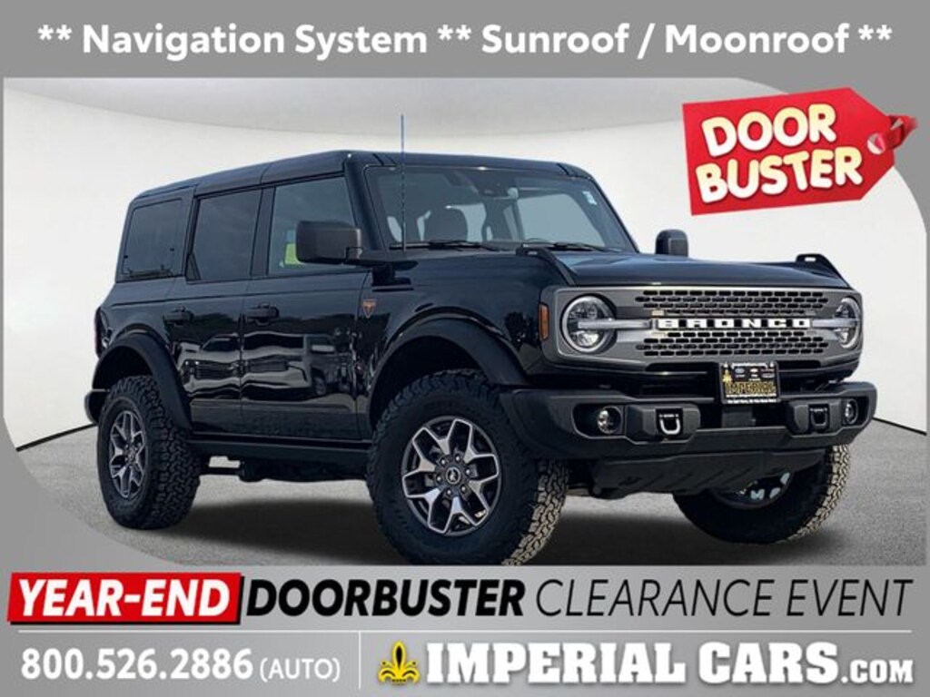 Navigation System, Sunroof / Moonroof, Blind Spot Monitor, Apple CarPlay / Android Auto, Lane Keeping Assistance, Cross Traffic Alert, Power Leather Seats, Heated Seats, Backup Camera, Bluetooth, Cruise Control, Power Windows, Power Locks, Steering Wheels Radio Controls, Aluminum Wheels, 2-Door Intelligent Access w/Lock/Unlock, Ambient Footwell Lighting, Connected Navigation, Dr & Pass Illuminated Sliding Visor Vanity Mirrors, Dual Smart Charging USB Ports, Dual-Zone Electronic Automatic Temperature Control, Equipment Group 332A Mid Package, Front Row Heated Seats, Power Outlet - Back Side of Center Floor Console, Rear Parking Sensors. Certified. Shadow Black 2025 Ford Bronco Badlands 4D Sport Utility Badlands 4WD 10-Speed Automatic