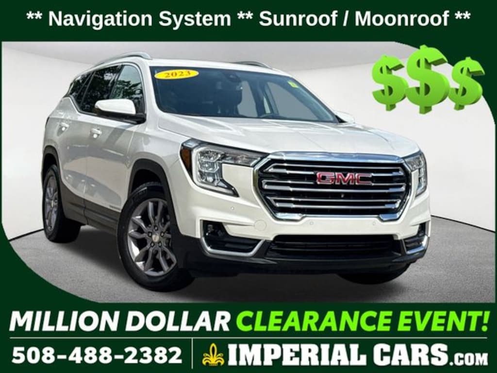 Navigation System, Sunroof / Moonroof, Blind Spot Monitor, Lane Keeping Assistance, Apple CarPlay / Android Auto, Adaptive Cruise Control, Cross Traffic Alert, Power Leather Seats, Heated Seats, Backup Camera, Bluetooth, Cruise Control, Power Windows, Power Locks, Steering Wheel Radio Controls, Aluminum Wheels, Luggage Rack, Adaptive Cruise Control, Front & Rear Park Assist, HD Surround Vision, Head-Up Display, Infotainment Package II, Lane Change Alert w/Side Blind Zone Alert, Preferred Equipment Group 4SA, Premium 7-Speaker Bose Sound System w/Amplifier, Radio: GMC Infotainment Audio System w/Navigation, Rear Cross-Traffic Alert, Rear Park Assist, Safety Alert Seat, Side Blind Zone & Rear Cross Traffic, SiriusXM Radio, Tech Package, Terrain Pro Safety Plus. Summit White 2023 GMC Terrain SLT SLT 4D Sport Utility 1.5L DOHC FWD 9-Speed Automatic