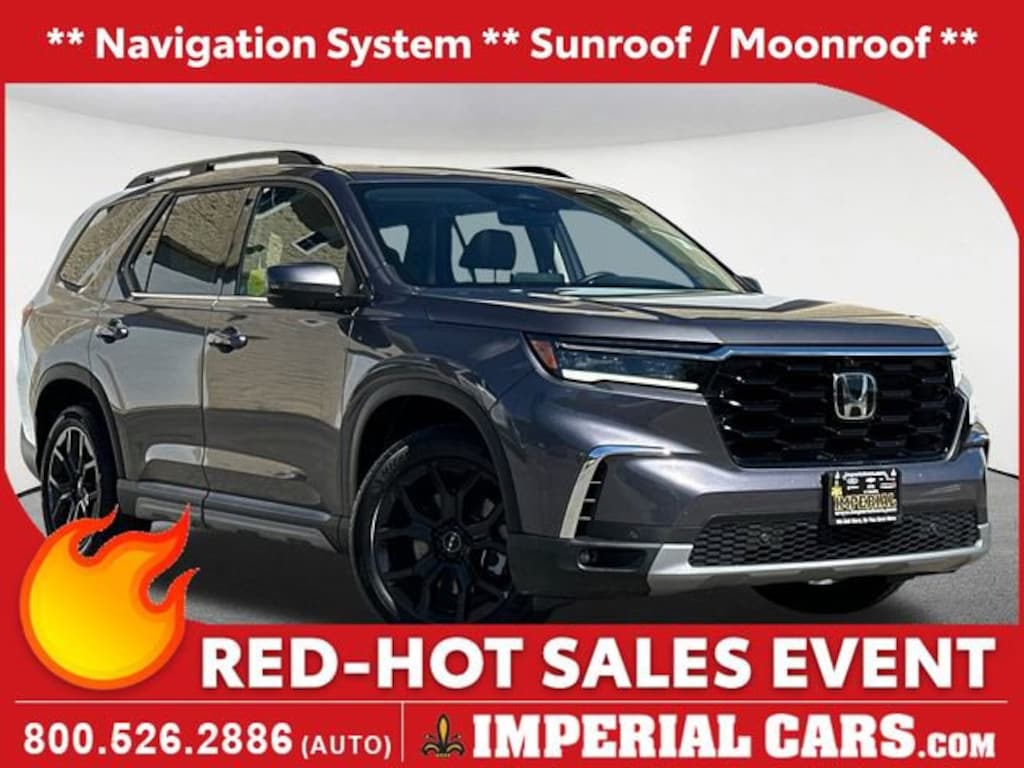 Navigation System, Sunroof / Moonroof, Blind Spot Monitor, Lane Keeping Assistance, Adaptive Cruise Control, Apple CarPlay / Android Auto, Power Leather Seats, Heated Seats, Backup Camera, Bluetooth, Cruise Control, Power Windows, Power Locks, Steering Wheels Radio Controls, Aluminum Wheels, Luggage Rack, Third Row Seats, AWD, Honda Satellite-Linked Navigation System, Navigation system: Honda Satellite-Linked Navigation System. Gray 2025 Honda Pilot Elite 4D Sport Utility Elite AWD 10-Speed Automatic