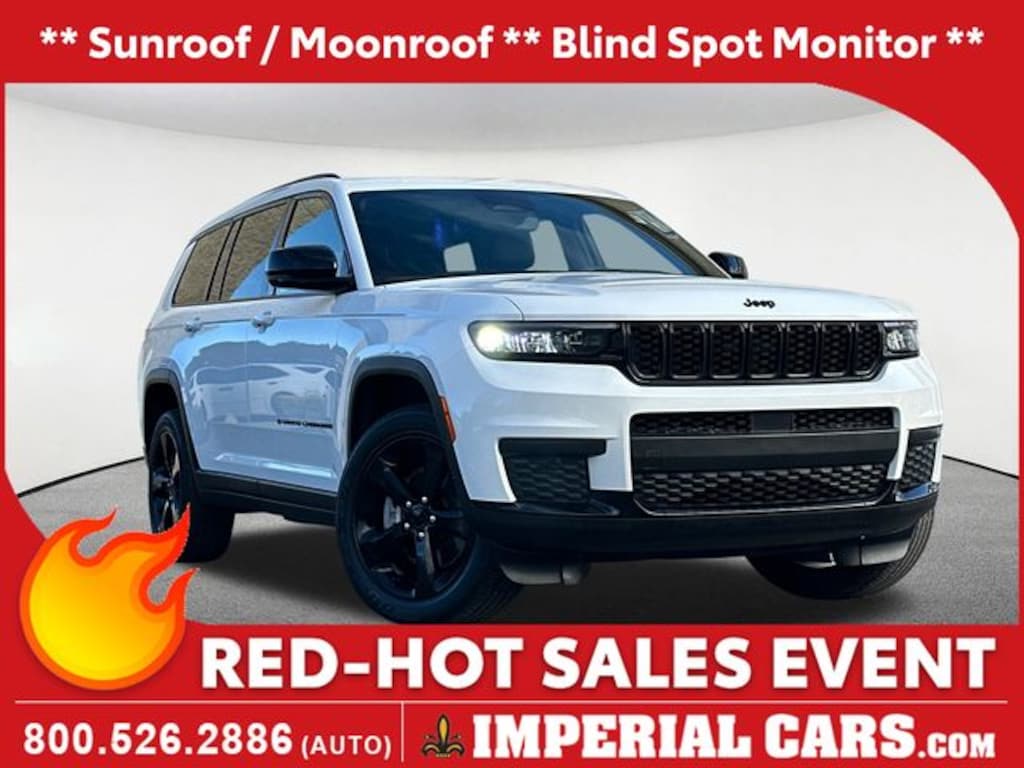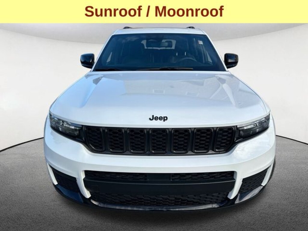 Recent Arrival! Sunroof / Moonroof, Blind Spot Monitor, Lane Keeping Assistance, Apple CarPlay / Android Auto, Adaptive Cruise Control, Power Leather Seats, Cross Traffic Alert, Heated Seats, Backup Camera, Bluetooth, Remote Engine Start, Cruise Control, Power Windows, Power Locks, Steering Wheels Radio Controls, Aluminum Wheels, Luggage Rack, Third Row Seats, 115V Auxiliary Power Outlet, 3rd Row Charge-Only USB Ports, Altitude Appearance Package, Black Headliner, Capri Leatherette/Suede Seats, Delete Laredo Badge, Gloss Black Exterior Accents, Heated Front Seats, Heated Steering Wheel, Molded In Color Black/Gloss Black Roof Rails, Power Liftgate, Quick Order Package 22B Altitude, Rain Sensitive Windshield Wipers, Remote Start System, Selectable Tire Fill Alert, Wheels: 18" x 8.0" Fully Painted Aluminum 1, Wireless Charging Pad. Bright White Clearcoat 2023 Jeep Grand Cherokee L Altitude 4D Sport Utility Altitude 4WD 8-Speed Automatic