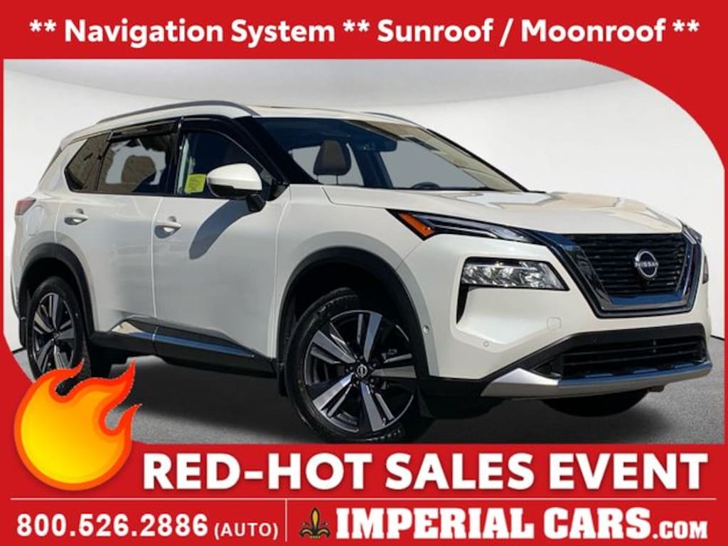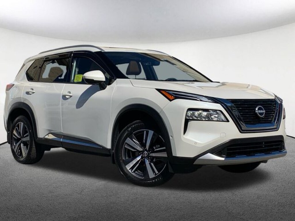 Recent Arrival! Navigation System, Sunroof / Moonroof, Blind Spot Monitor, Lane Keeping Assistance, Apple CarPlay / Android Auto, Adaptive Cruise Control, Power Leather Seats, Cross Traffic Alert, Heated Seats, Backup Camera, Bluetooth, Cruise Control, Power Windows, Power Locks, Steering Wheels Radio Controls, Aluminum Wheels, Luggage Rack, AWD, Heads-Up Display, Navigation system: NissanConnect Navigation, Platinum Premium Package, Rear Heated Seats, Tri-Zone HVAC. Pearl White Tricoat/Super Black 2023 Nissan Rogue Platinum 4D Sport Utility Platinum AWD CVT with Xtronic