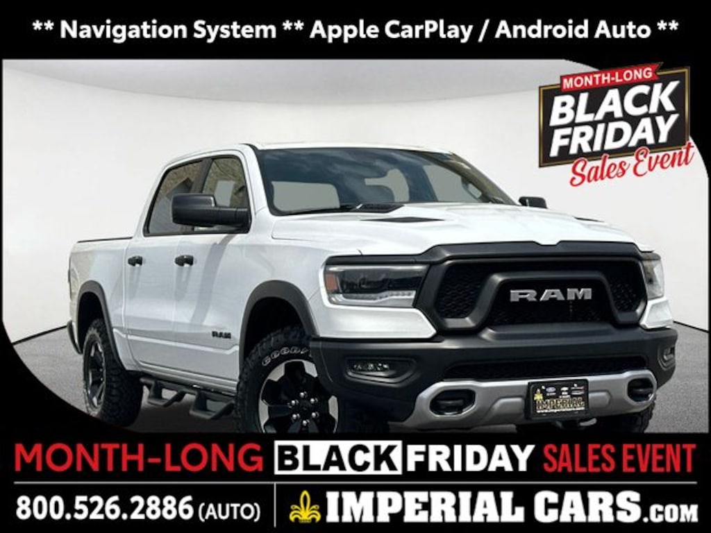 Recent Arrival! Navigation System, Apple CarPlay / Android Auto, Backup Camera, Bluetooth, Cruise Control, Power Windows, Power Locks, Steering Wheels Radio Controls, Aluminum Wheels, Running Boards / Side Steps, Towing Package, GPS Navigation, Navigation System, Quick Order Package 27W Rebel. Bright White Clearcoat 2023 Ram 1500 Rebel 4D Crew Cab Rebel 4WD 8-Speed Automatic
