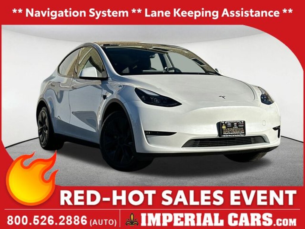 Recent Arrival! Navigation System, Lane Keeping Assistance, Power Leather Seats, Heated Seats, Backup Camera, Bluetooth, Cruise Control, Power Windows, Power Locks, Steering Wheels Radio Controls, Aluminum Wheels, Navigation System, 14 Speakers, 4-Wheel Disc Brakes, 5 Seat Interior, ABS brakes, Air Conditioning, Alloy wheels, Audio memory, Auto High-beam Headlights, Auto tilt-away steering wheel, Auto-dimming door mirrors, Auto-dimming Rear-View mirror, Automatic temperature control, Brake assist, Bumpers: body-color, Compass, Delay-off headlights, Driver door bin, Driver vanity mirror, Dual front impact airbags, Dual front side impact airbags, Electronic Stability Control, Emergency communication system, Exterior Parking Camera Rear, Four wheel independent suspension, Front anti-roll bar, Front Bucket Seats, Front Center Armrest, Front dual zone A/C, Front fog lights, Front reading lights, Fully automatic headlights, Genuine wood dashboard insert, Heated door mirrors, Heated front seats, Heated rear seats, Heated steering wheel, HVAC memory, Illuminated entry, Knee airbag, Lane Departure Warning System, Low tire pressure warning, Memory seat, Occupant sensing airbag, Outside temperature display, Overhead airbag, Passenger door bin, Passenger vanity mirror, Power door mirrors, Power driver seat, Power Liftgate, Power passenger seat, Power steering, Power windows, Radio data system, Radio: Premium Audio System w/13 Speakers, Rain sensing wipers, Rear air conditioning, Rear reading lights, Rear seat center armrest, Rear window defroster, Security system, Speed control, Speed-sensing steering, Split folding rear seat, Steering wheel memory, Steering wheel mounted A/C controls, Steering wheel mounted audio controls, Telescoping steering wheel, Tilt steering wheel, Traction control, Trip computer, Variably intermittent wipers, Vegan Leather Seat Trim, Wheels: 19" x 9.5" Gemini Dark, Navigation System. White 2025 Tesla Model Y Long Range 4D Sport Utility Long Range AWD 1-Speed Automatic